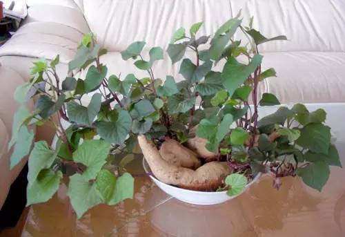如果您会一点造型设计,便可以来个红薯盆景,剪下的叶子可以炒菜吃。
